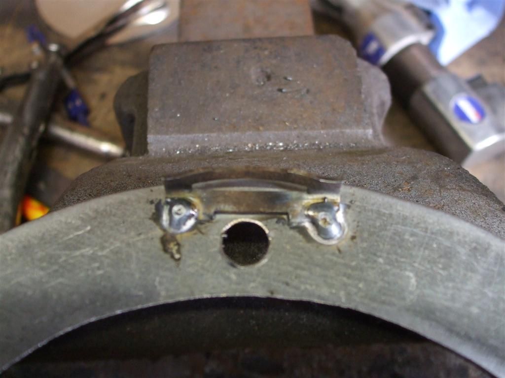 To be able to use the original Jeep headlight surrounds I cut off the old locator bracket off the old bucket and welded it to the new spacer